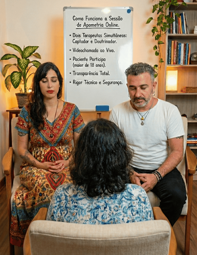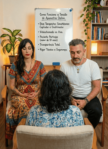 Para garantir a segurança e a eficácia, uma sessão de Apometria séria exige no mínimo 2 terapeutas atuando simultaneamente: